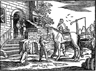 Description: The Good Samaritan leads the wounded man into Jericho on his donkey.