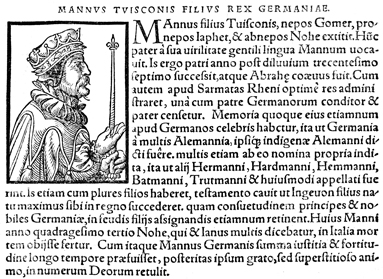 Description: An image of Mannus, a Germanic mythical figure and ancestor of three Germanic tribes.