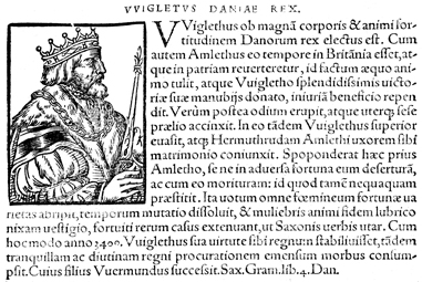 Description: An image of Wihtlæg, a legendary King of Denmark.