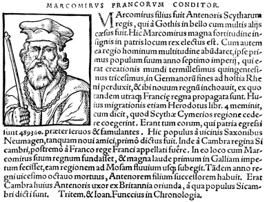 Description: An image of Marcomer, a Frankish leader in the late 4th century CE who invaded the Roman Empire.
