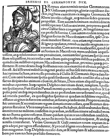 Description: An image of Brennus, or Brennos, a leader of the Gauls who led an invasion of the Balkans.