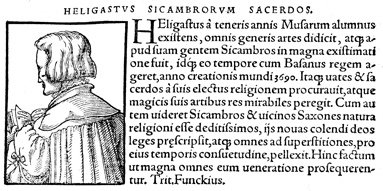 Description: An image of Heligast, a priest and lawgiver among the Sicambri.