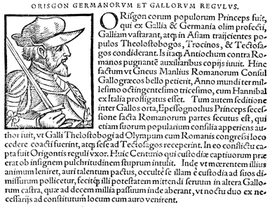 Description: An image of Orisgon, a Celtic chieftan of Galatia during the Galatian War between the Galatian Gauls and the Roman Republic.