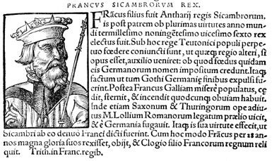 Description: An image of Francus, a legendary King of the Franks (r. 39 BCE- 10 CE).