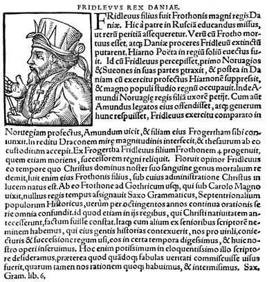 Description: An image of Fridlevus II, a legendary King of Denmark (r. 21-33 CE).