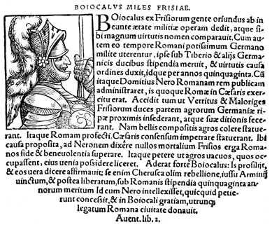 Description: An image of Boiocalus, a leader of the Ampsivarii, a German tribe in the 1st century CE.