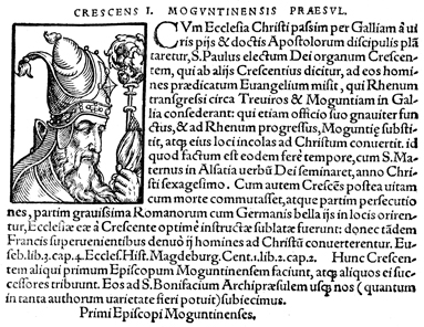 Description: An image of Crescens, the first Bishop of Moguntiacum (r. 80-103 CE).