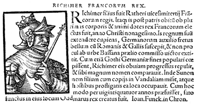 Description: An image of Richemer, a legendary King of the Franks (r. 90-114 CE).