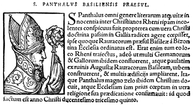 Description: An image of Pantalus, a martyr and the Bishop of Basel in the 5th century CE.