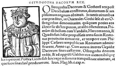 Description: An image of Decebalus, originally named Diurpaneus, the King of Dacia (r. 87-106 CE). The text tells of the developments among the Goths, Ostrogoths, Vandals, and Dacians since the death of Decebalus.
