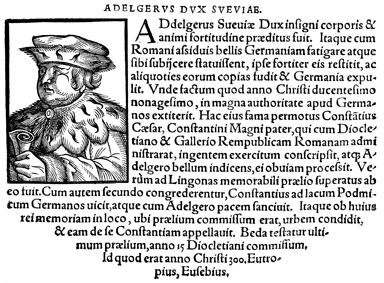 Description: Portrait of Adelgerus, a chieftain of the Suebi.