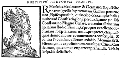Description: An image of Reticius, a Catholic saint and the Bishop of Autun (r. c. 310-334 CE).