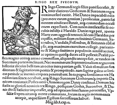 Description: An image of Ringo, or Ring, a legendary King of Denmark and Sweden.