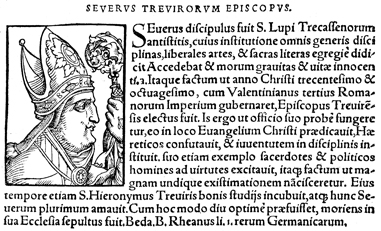 Description: An image of Severus, the Bishop of Trier (428-455 CE).