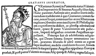 Description: An image of Gratian, or Flavius Gratianus, Emperor (r. 367-375 CE) of the Western Roman Empire.