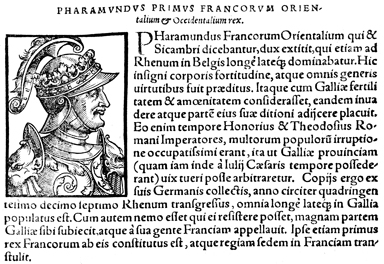 Description: An image of Pharamond, or Faramund, a legendary king of the Franks.