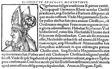 Description: An image of Siegbert I, the Bishop of Moguntiacum (r. c. 589-610 CE).