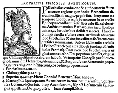 Description: An image of Prothasius, who in this article is presented as the first Bishop of Aventicum (r. 500-520 CE).