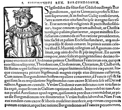 Description: An image of Sigismund of Burgundy, a Catholic saint and the King of Burgundy (r. 516-523 CE).