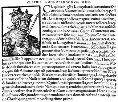 Description: An image of Cleph, the King of the Lombards (r. 572-574 CE).