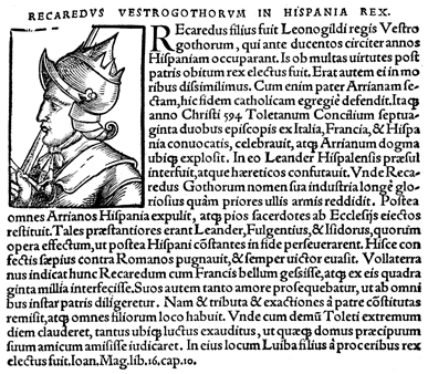 Description: An image of Reccared I, King of the Visigoths (r. 586-601 CE).