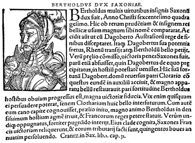 Description: An image of Berthoald, the Duke of Saxony during part of the 7th century.