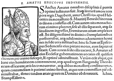 Description: An image of Amatus, a French Benedictine monk, hermit, Catholic saint, and the first abbot of Remiremont Abbey.