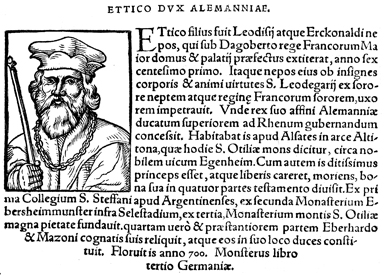 Description: An image of Eticho I, or Aldaric I, the Duke of Alsace (r. c. 662-after 683 CE).