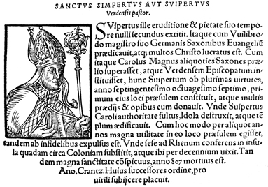 Description: Portrait of Simpert, a Catholic saint, abbot, and Bishop of Augsburg (r. 778-807).