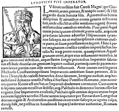 Description: An image of Louis I the Pious, the King of Aquitaine (r. 781-814 CE), King of the Franks (r. 814-840 CE), and Holy Roman Emperor (r. 813-840 CE).