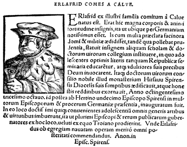Description: Portrait of Erlafrid, an ancestor of the counts of Calw.