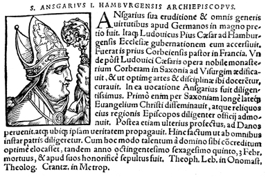 Description: An image of Saint Ansgar, the first Archbishop of Hamburg (r. 834-865 CE) and the Bishop of Bremen (r. 848-865 CE).
