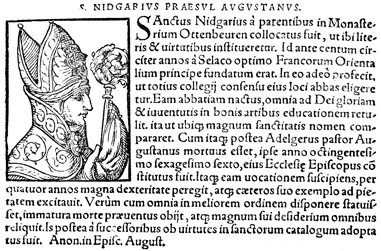 Description: An image of Nidgar, or Nidker, the Bishop of Augsburg (r. 816-830 CE).
