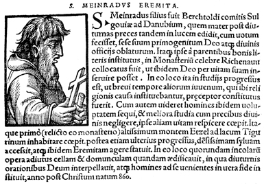 Description: An image of Saint Meinrad, a hermit and Roman Catholic Saint.