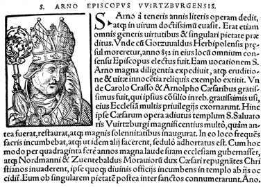 Description: An image of Arn, or Arno von Endsee, the Bishop of Würzburg (r. 855-892 CE).