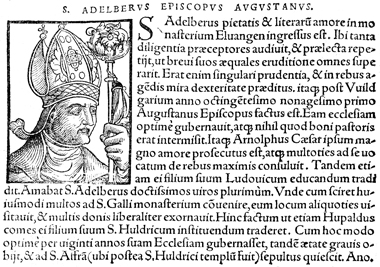 Description: An image of Adalbero, the Bishop of Augsburg (r. 887-909 CE).