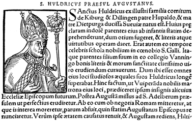 Description: An image of Ulrich of Augsburg, the Bishop of Augsburg (r. 923-973 CE).