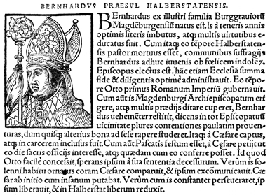 Description: An image of Bernhard, the Bishop of Halberstadt (r. 926-968 CE).