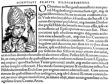 Description: An image of Otwin, the Bishop of Hildesheim (r. 954-984 CE).
