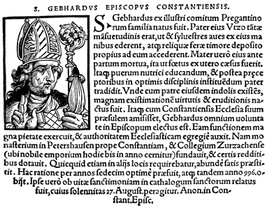 Description: An image of Gebhard of Constance, the Bishop of Constance (r. 979-995 CE) and the founder of the Benedictine Abbey of Petershausen.