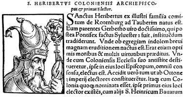Description: An image of Heribert, the Archbishop of Cologne (r. 999-1021 CE), the Chancellor of Holy Roman Emperor Otto III, and a Catholic saint.