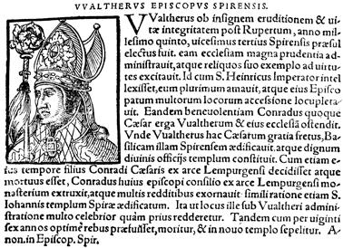 Description: An image of Walter, a German poet and the Bishop of Speyer (r. 1004-1031 CE).