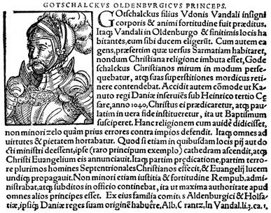 Description: An image of Saint Gottschalk, or Godescalc, a prince of the Obotrite confederacy in the 11th century CE.
