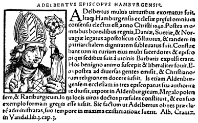 Description: An image of Adalbert, the Archbishop of Bremen-Hamburg (r. 1043-1072 CE).