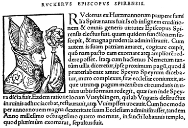 Description: An image of Rüdiger Hutzmann, the Bishop of Speyer (r. 1073-1090 CE).