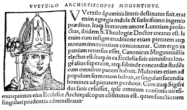 Description: An image of Wezilo, the Archbishop of Mainz (r. 1084-1088 CE).