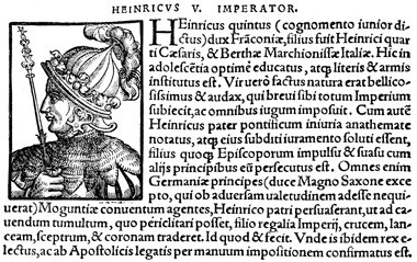 Description: An image of Henry V, the Holy Roman Emperor (r. 1111-1125 CE), the King of Italy (r. 1098-1125 CE), and the German King (r. 1099-1125 CE).