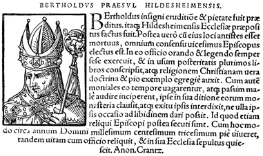 Description: An image of Berthold I of Alvensleben, the Bishop of Hildesheim (r. 1119-1130 CE).