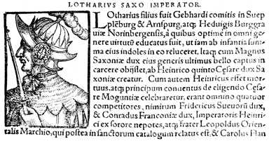 Description: An image of Lothair III, the German King (r. 1125-1137 CE), the King of Italy (r. 1128-1137 CE), the Holy Roman Emperor (r. 1133-1137 CE), and the Duke of Saxony (r. 1106-1137 CE).