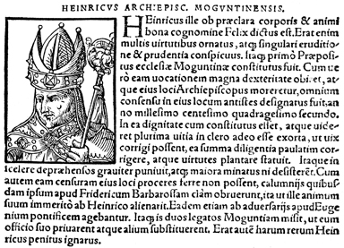 Description: An image of Henry I, the Archbishop of Mainz (r. 1142-1153 CE).